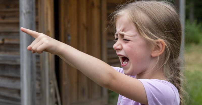 Посреди гравийной дороги стояла маленькая девочка. На ней были тапочки, тёмно-синяя кофта и чёрные брючки — явно слишком лёгкие для такой погоды. Лицо и руки были испачканы грязью, волосы растрёпаны, губы приоткрыты, будто она хотела закричать, но голос ей не повиновался.
